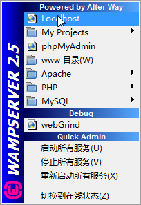 第一步,下载装置wampserver,不必管一些运转时的设置,直接一起直到完成,翻开图标为绿色则证实能够运转。假如看英文不轻易,右键图标,挑选语音,调成中文。