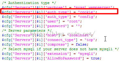 若修正完成以后,依旧没法准确衔接数据库。则找到“D:\wamp\apps\phpmyadmin4.1.14”,翻开“config.inc”检察phpmyadmin的衔接信息,检察设置是不是有问题,而且去掉第二行的解释。