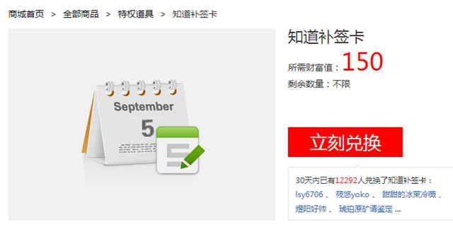 c、注重积聚财产值,财产值虽然不能提拔品级,然则能够到财产商城中购置特权道具,比方本日遗忘签到了,能够购置晓得补签卡。