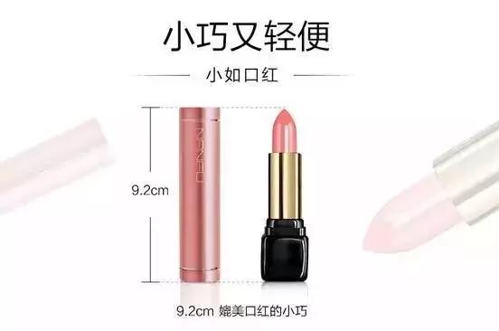 你看,这个问题直接用一张口红的参照图就处理了,异常直观抽象,看的人都晓得了这个迷你充电宝好小啊,居然和口红差不多大小。