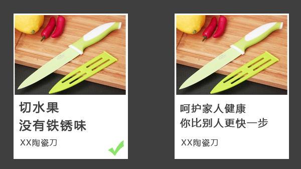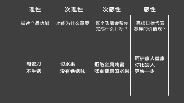 假如你的产物只要说出卖点,他人天然就有购置效果。营销的重点是申明功用。这时刻应当挑选理性作为切入点。像陶瓷刀,偏理性的案牍更适宜。