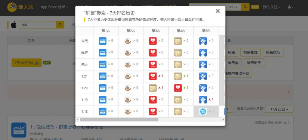 2、借助“蝉巨匠”等第三方东西来检察你关注的关键词近7天TOP5汗青排名是不是有变化;