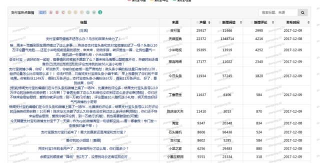 本日头条“付出宝互怼事宜”后付出宝热门舆情统计