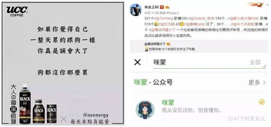 本月入手下手盛行“丧营销”并疾速沾染,种种丧自媒体、丧案牍、丧广告、丧产物…这类丧营销的余波一向舒展到岁尾(如:微博、朋友圈晒自身有若干挚友关注咪蒙就晓得你有多失利)。着实这类丧营销最早源自2016年日本UCG咖啡品牌在台湾举办的“大人的腹黑语录”征集营销运动。