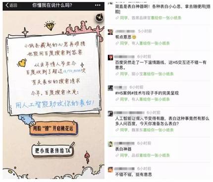 2月除了“丽江女旅客被打”事宜激发的旅游业危急舆情外,2.14情人节无疑是各大品牌借此打响一年推行开门红的第一炮, 出人意外,百度凭差异化创意H5“小纸条”(那些年我们偷偷传过的小纸条+壮大雄厚的图象AI辨认手艺)脱颖而出。