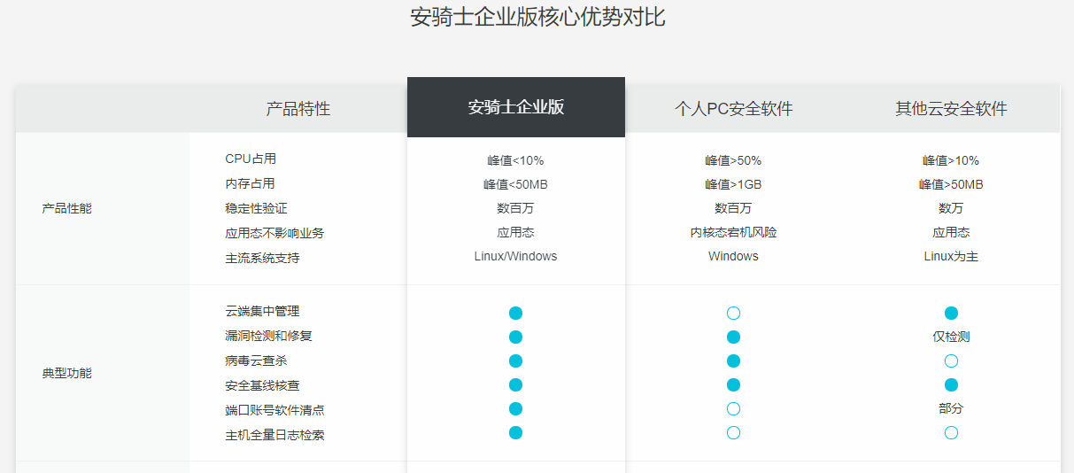 什么叫安骑士?这是一款什么样的产物,一款主机平安软件,协助企业竖立平安运维治理平台,具有集合治理、平安监控、平安措置、下落占用4个主要功能。