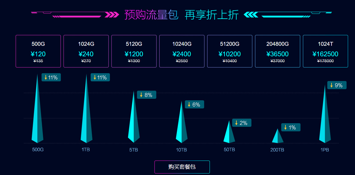 比方,阿里云CDN再贬价,详细降若干呢?流量单价下落,最低只需0.15元/GB,只是给了底价,详细差别产物降到什么价位呢?预购流量包,再享折上折,每一个流量包贬价百分比,原市场价,折扣价,数据清晰可见。