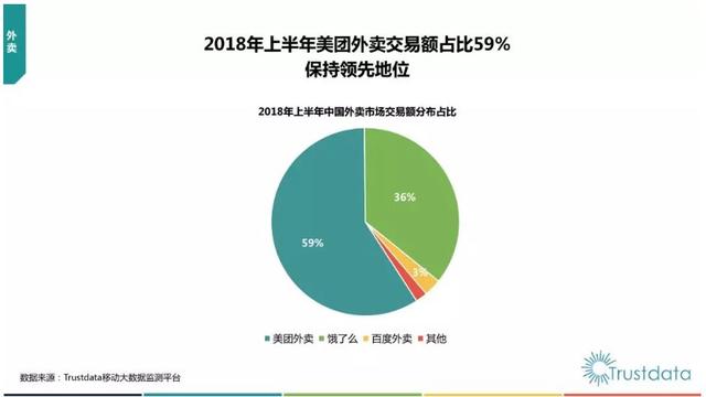 7月31日,第三方互联网大数据监测机构Trustdata宣布了《2018年上半年中国移动互联网行业生长剖析报告》。个中外卖行业的数据展现,美团外卖的市场份额占比高达59%,饿了么占有36%,而百度外卖占有3%,展现出“631”款式。