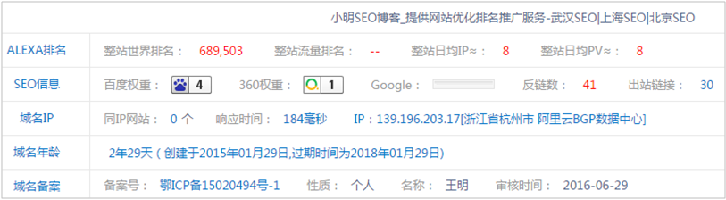 近来有些忙,所以也没怎么理睬小灵通SEO博客,这几天文章也没更新,也没有用站长东西查询网站。就在适才吃过晚餐,一时想起了看看小灵通SEO博客的SEO数据状况,不查不知道,一查吓一跳,小灵通SEO博客没想到已都权重4了,这确切让我始料未及,或者说基础没有想过。