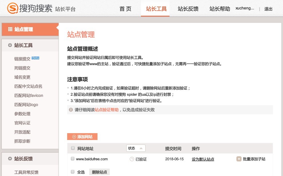 在搜狗站长平台背景,点击站点治理——增加网站。接下来按提醒操纵便可完成网站归属认证,网站归属认证后才提交站点LOGO。