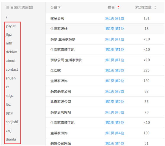 这是某装修公司的关键词排名状况,一个企业网站首页的主关键词也就是那末3-5个,那末就算你能够扩大长尾关键词,最多也就是权重3-4摆布,那末想要继承扩大,那就经由过程栏目也操纵,竖立差别的栏目,做好差别的优化战略,只需如许,才能够做到更多的关键词排名。