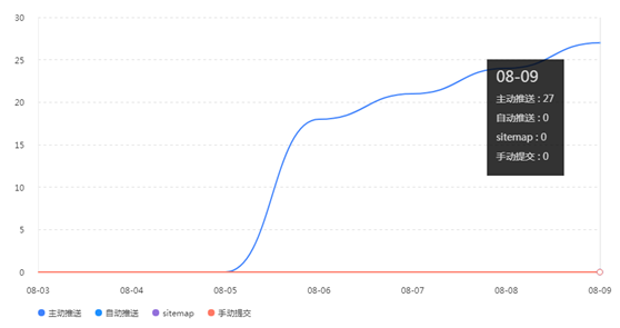 主动推送的重要结果就是,将本身网站的内页首页栏目页全自动推送到搜索引擎上,如许才能够处置惩罚疾速收录内页栏目页的问题,上面是小编近来操纵的一个新站,8月5日建站,8月9日自动推送了27条。这么好的东西已要预备好。
