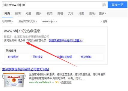 这是某着名装修公司的一个排名状况,现在来说排名能够说是在装修公司行业算不错了,固然和哪些平台没法比,这一点我最入手下手就说了缘由,然则针对企业网站来说,这个站点做的异常不错了,细致一看,1.8万个页面被收录,一个企业网站能做到如许,剩下的人人去体味。