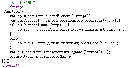 上图是一段自动推送的JS,这个JS是百度站长平台推送出来的,只需有人翻开这个新页面,那末就会提交一次,运用起来异常轻易。