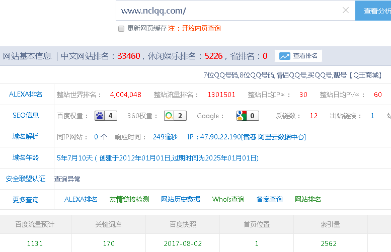 网站主如果生意QQ号的,听客户说之前天天的流量照样很不错的,降权之前天天流量都比较牢固,然则经百度降权以后,基本上也就是一两天的时刻,流量就所剩无几了,因为网站的流量绝大部分都是用户经由过程搜刮引擎搜刮关键词过来的。搜刮引擎这个渠道端了,流量一就随之消逝殆尽了。