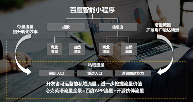 应用百度智能小程序,搭上小程序流量盈余的班车,百度搜刮和百度信息流两手一同抓,经由过程贸易流量+天然流量举行多维度的流量拓展。