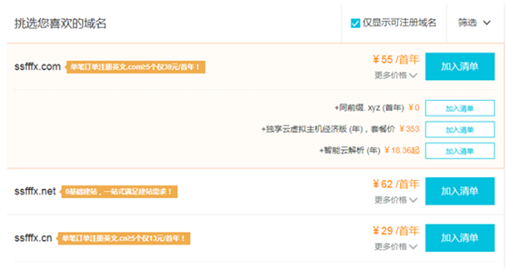 上图万网的域名报价,差异的域名注册效劳商域名注册都不一样,就算价钱不一样也不要遴选小公司的,竟大概遴选大公司的,比方万网就是阿里巴巴旗下运营的公司,至少在售后各方面都不会存在很大的问题。