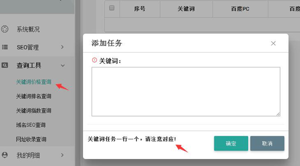 3:关键词查询功用 背景还能够运用关键词价钱查询功用,关键词排名查询等,能够查询关键词按天收费价钱,最低9.7元一天不等,起码优化时候30天。