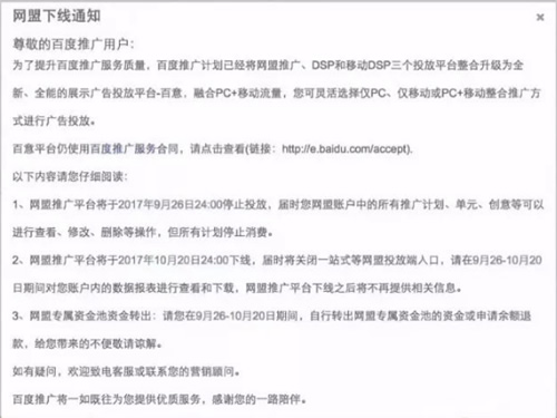 据百度最新消息称百度网盟宣布正式下线,而且全新推行平台「百意」将上线。