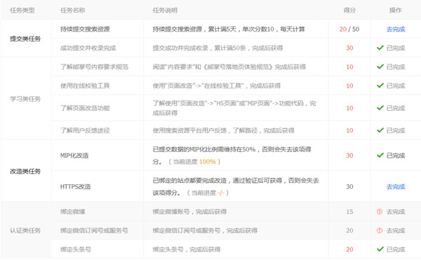 也就是说在新搜刮指数的评代价中,将会更增强调内容质量与原创才(取得质量分),而且完成熊掌号义务就能够得分(取得义务分);之前只能在新手期完成的义务百度排名优化,如今能够在新手期经由过程后继续完成了。