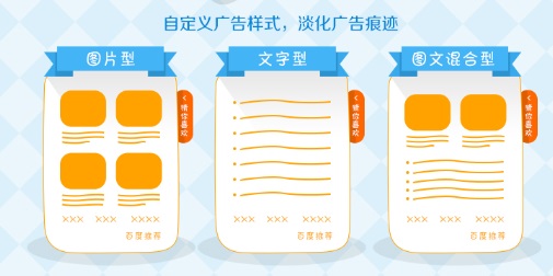 百度推荐广告系统可自定义广告款式app开发,有广告和内容两种范例的信息推送形势,可一键开通。