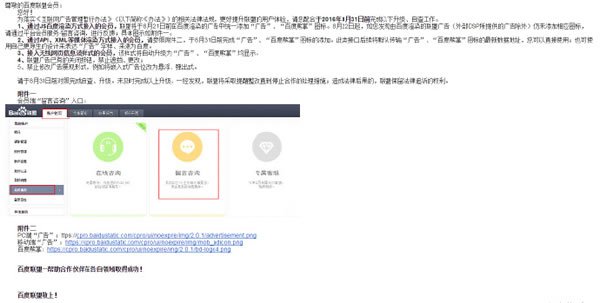 1、 经由过程JS百度衬着格式接入的会员,同盟将于8月21日前在百度衬着的广告中统一增加“广告”、“百度熊掌”图标。8月22日起百度排名,如您发明由百度衬着的同盟广告(外部DSP所供应的广告除外)仍未增加相应图标,请经由过程平台会员效劳-留留言征询,举行行反应;细致图示如附件一。