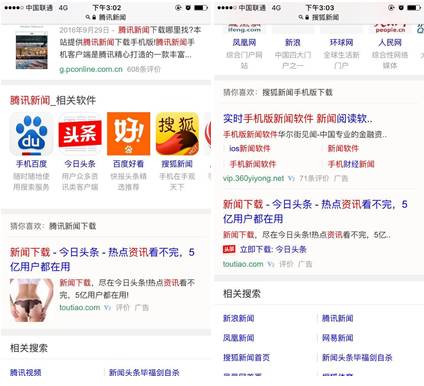 不止凤凰深受其害,腾讯音讯和搜狐音讯的相关搜素里都被本日头条买走了关键词的搜刮。